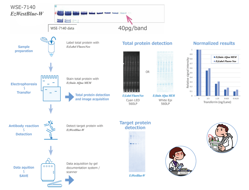 Total protein normalization is a technique used to correct for variations in protein loading between samples, ensuring accurate protein quantification. EzWestBlue W is compatible with total protein normalization procedures, allowing researchers to obtain reliable and reproducible results.