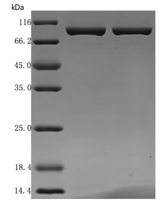 The SDS-PAGE electrophoresis image showcases the distinct bands corresponding to Pfu II High-Fidelity DNA Polymerase, providing visual confirmation of its purity and molecular integrity.