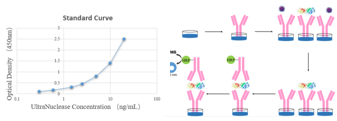 UltraNuclease Detection involves the identification and quantification of the activity of UltraNuclease enzymes within a biological or experimental sample. This detection process often utilizes specific assays or techniques that can measure the enzymatic degradation of nucleic acids in the presence of UltraNuclease. These assays are crucial for confirming the efficacy and activity of UltraNuclease in removing or degrading unwanted nucleic acids, ensuring the integrity and purity of biological samples for downstream applications.