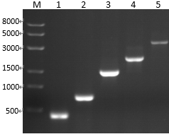 Line1-5:Fragment size 460/750/1500/2100/3900bp